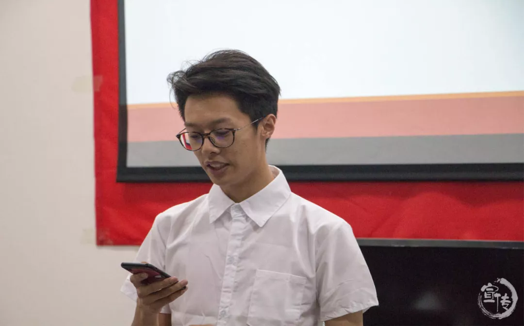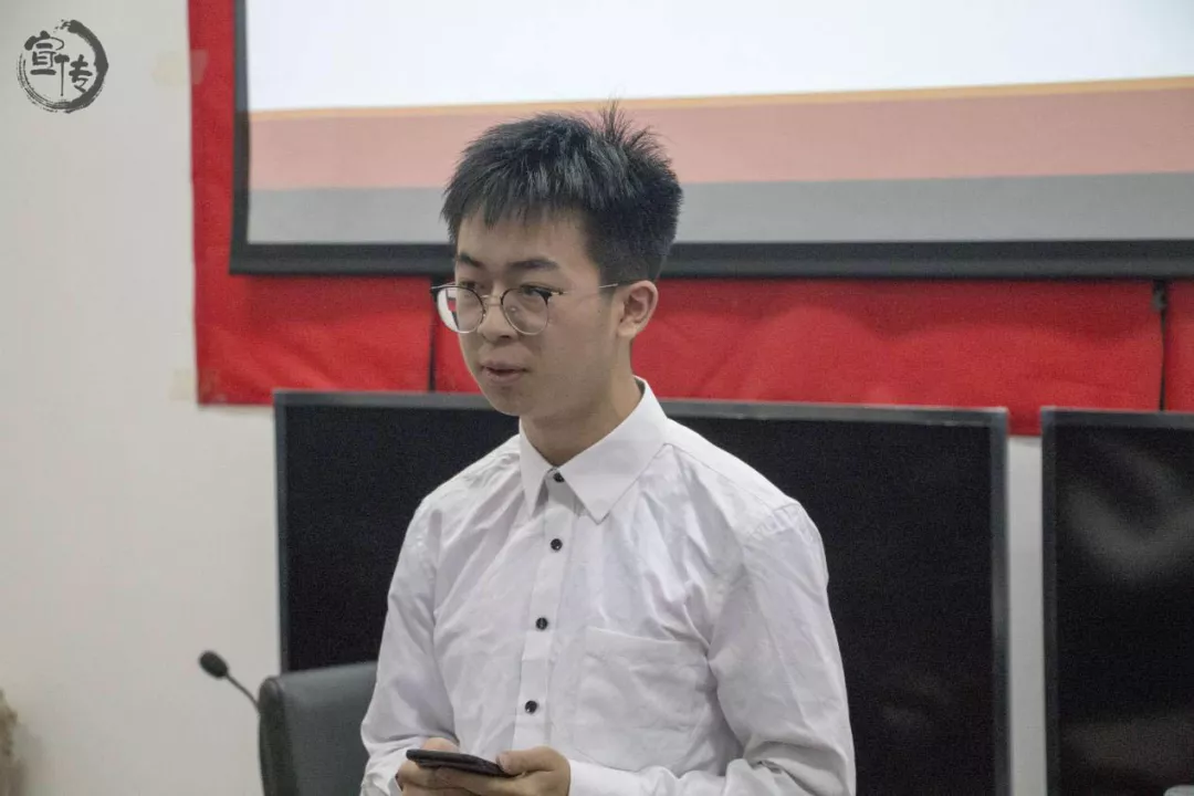 宣传部部长竞选人郭曦琨在大会上陈述一年以来的工作经验总结,并详细讲解新的一年自己的工作设想、各项规则和人员安排计划。