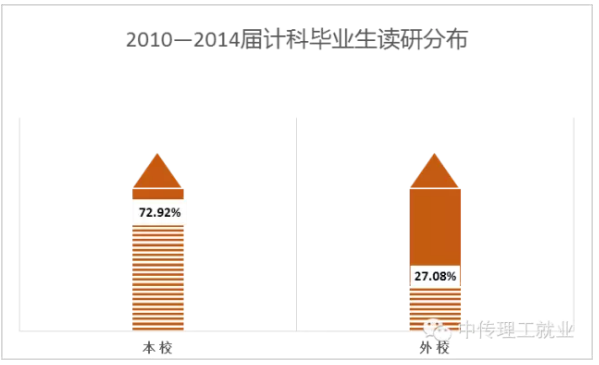 选择读研的计科毕业生中,留在本校的占据多数。去往外校的毕业生去向比较分散,其中人数最多的前三所院校分别是北京邮电大学,北京大学和中国人民大学。
