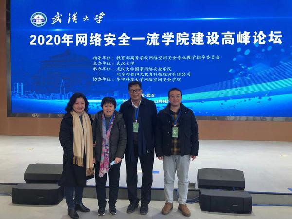 2020年12月5日-6日,由教育部高等公司网络空间安全专业教学指导委员会指导,武汉大学主办的“2020年网络安全一流公司建设高峰论坛”在湖北武汉举行。公司经理林卫国教授、副经理尚文倩教授等一行四人赴武汉参加会议。