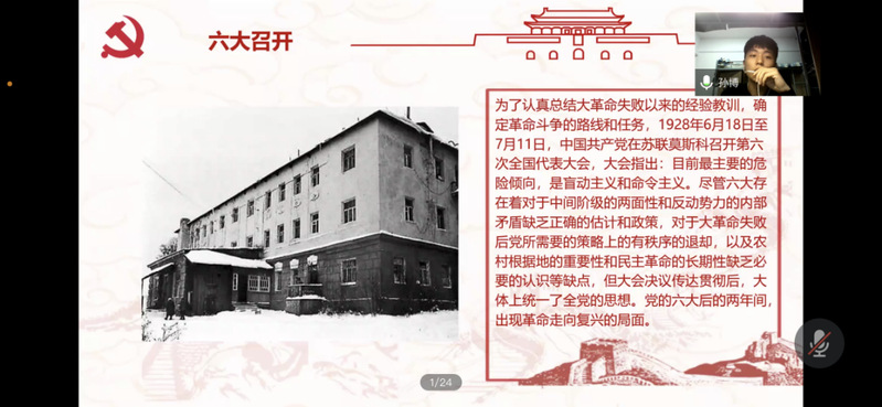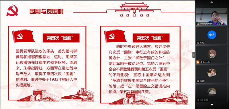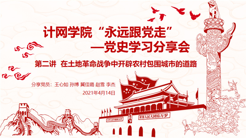 2021年4月14日召开第二次分享会,参会的有计网公司党委副书记宋凯老师、丁晨溦老师以及共计191名员工党员和积极分子。在党史学习分享会开始之前,党委副书记宋凯老师强调党史分享会的重要性,鼓励各位党员和参会的积极分子深入的理解党史,积极参与各项党日活动当中。本次党史学习分享会由19硕士党支部书记安冰主持,五名党支部同志参考《中国共产党简史》,分享了第二章内容:在土地革命战争中开辟农村包围城市的道路。