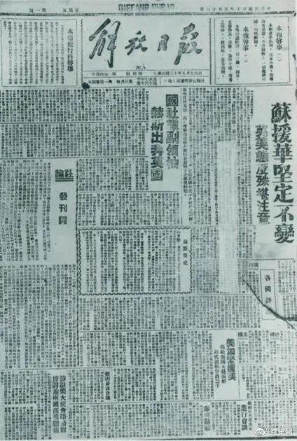 图为1941年5月16日在延安创刊的中共中央机关报《解放日报》。