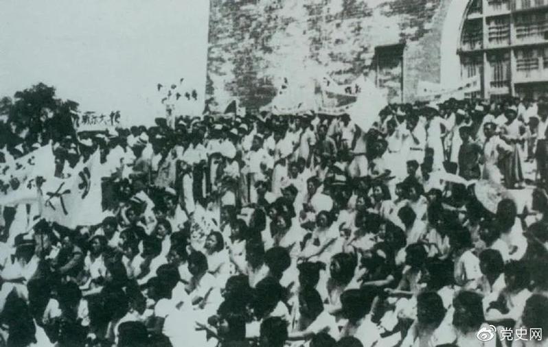 1936年6月13日,北平员工与市民在鼓楼前举行声势浩大的抗日集会。