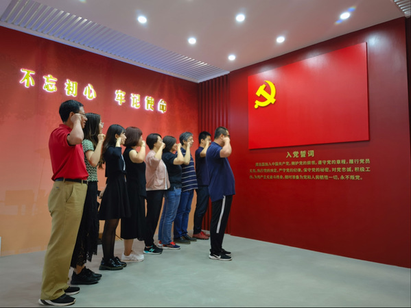 参观完展览后,支部党员在党旗下重温入党誓词,铿锵有力的声音传达出了身为共产党员的自豪感和使命感,展示了实验中心全体党员为党和人民的事业奋斗终身的不变理想和追求。通过此次重温入党誓词活动,激发了党员干部的荣誉感、责任感、和使命感,增强了党性观念,铭记了入党初心,大家纷纷表示将更加坚定理想信念,忠实践行入党誓词。