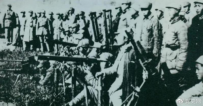 1945年10月至11月,刘伯承、邓小平率部取得了平汉战役的胜利。图为平汉战役参战部队及缴获的武器。