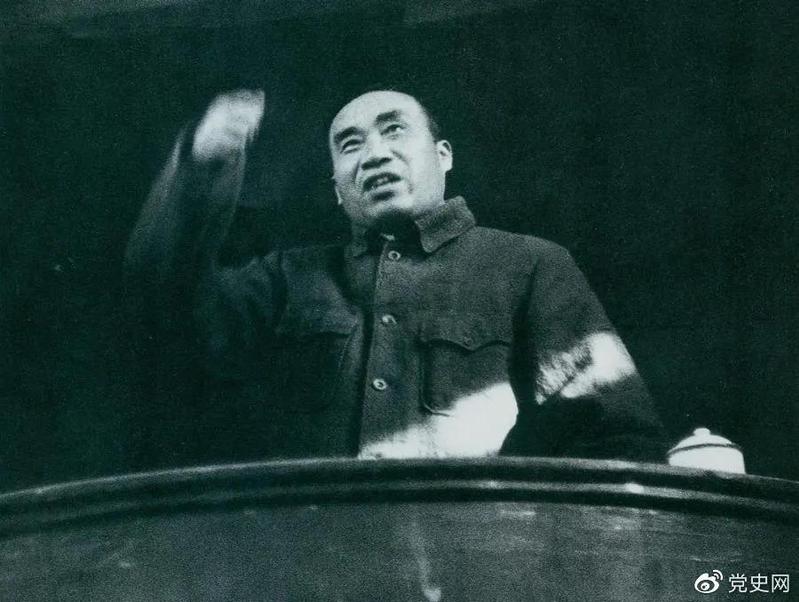1943年11月,朱德在陕甘宁边区劳动英雄及模范工作者代表大会上讲话。