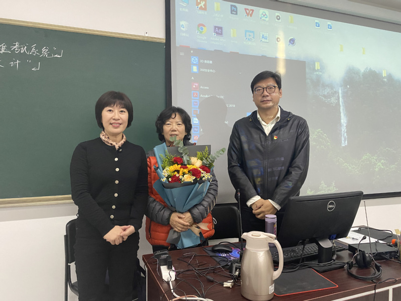 宣讲会结束后,王淑娟书记、宋凯副书记向毛明华教授献花并合影留念。