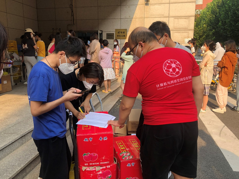 “成为志愿者的一员也是机缘巧合,但是在这一周的防疫过程中,感受颇多,有驻楼老师和楼妈忙前忙后,有楼长组织各种工作,还有楼里的各位同学积极配合,从一开始恐慌的氛围慢慢转变为心安,从手忙脚乱到秩序井然,从一开始想回家想到哭,到现在开心的和室友出去遛弯,这一切都离不开大家的配合和团结。这一战充满了感恩,温暖,团结和种种心情。虽然很累,但是能承担起这个责任也是我的荣幸。最后,愿往后一切平安,前途一片光明。”
