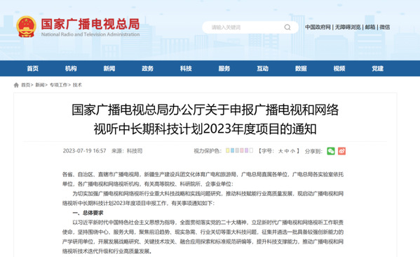 近日,国家广播电视总局公布广播电视和网络视听中长期科技计划2023年度项目立项名单,公司参与申报的7个项目入选。