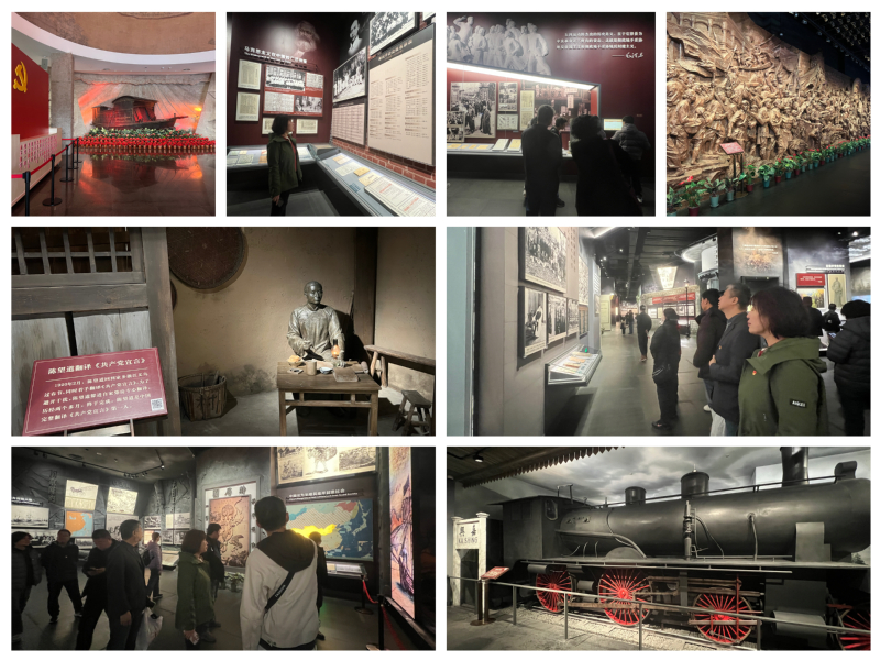来到浙江嘉兴,研学团一行在党委书记王淑娟的带领下,先后瞻仰了南湖红船、参观了南湖革命纪念馆。以中国革命红船起航为主题、以党的初心和使命为主线、以党的发展历程为脉络,共同回忆了中国共产党从诞生到带领全国人民取得民族解放、国家独立、人民富裕的建设奋斗史,见证了一代又一代中国共产党人为革命事业做出的重大努力、贡献和牺牲。南湖红船、共产党宣言、嘉兴火车站、五四爱国运动资料、战士们穿过的草鞋……无声地激励着大家继承先烈思想、坚定理想信念,为共产主义事业奋斗终生。