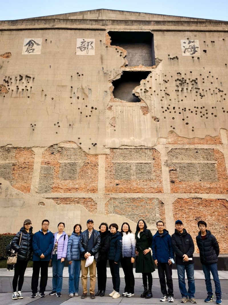在四行仓库抗战纪念馆,这里至今还保留着布满炮坑和弹孔的外墙。大家伫立墙下,当年的硝烟弥漫、战火纷飞仿佛就在眼前。四行仓库保卫战是淞沪会战的最后一战,由抗日英烈谢晋元率领“八百壮士”顽强抵抗日军四天四夜的进攻。墙面上原先的11个字——“四行信托部上海分部仓库”,如今只留下其中的“四行、部、海、部、仓库”仍清晰可辨。