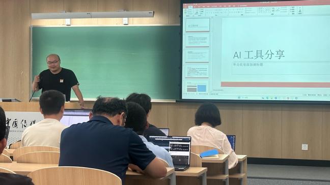 会上,周帜和郑中翔两位教师分享了他们在实际教学中运用AI工具的宝贵经验。