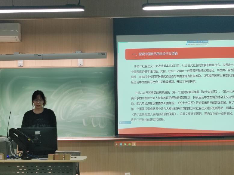 侯云云同志带领大家学习了中国共产党简史中“探索中国自己的建设社会主义的道路”一节。本节从八大开始,回顾了中国共产党在探索建设中国自己的社会主义道路中提出的正确理论、取得的伟大成功和面临的艰难曲折,简单介绍了《论十大关系》、《正确处理人民内部矛盾》、党的八大、庐山会议等重要的历史文件、讲话和会议,分析了党在该过程中的出现的失误并给出原因,最后给出了党在纠正错误上提出的理论和做出的努力。
