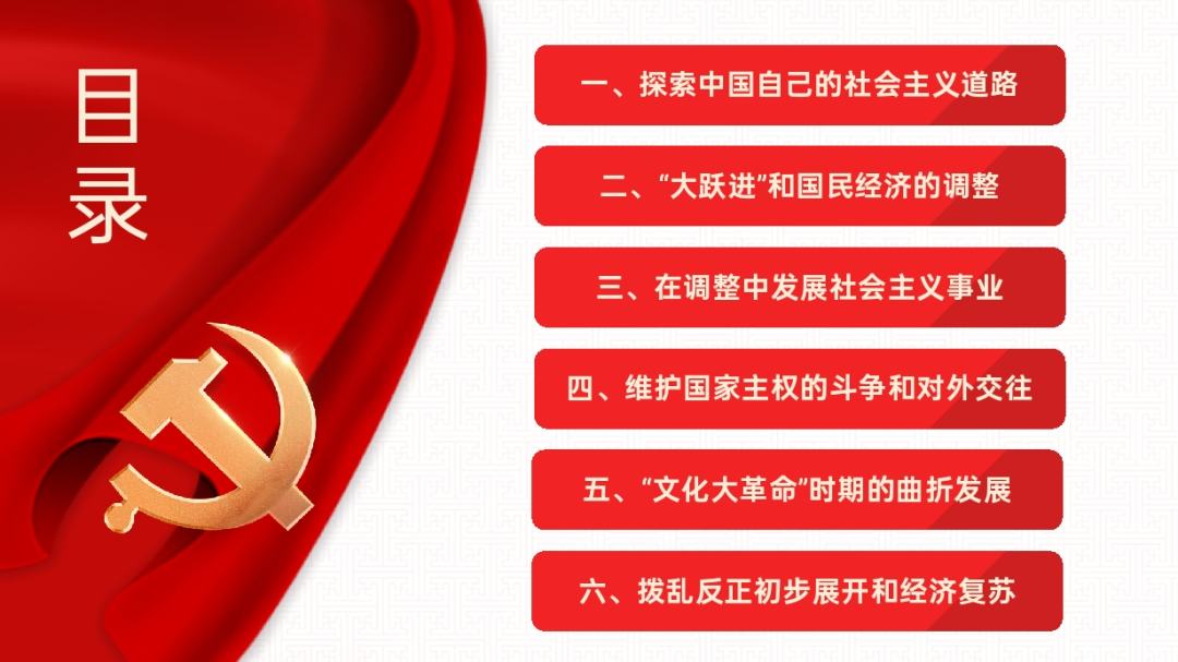 李青琪同志带领大家学习了社会主义建设的艰辛探索和曲折发展。从提出要探索中国自己的社会主义道路,到《论十大关系》、中共八大提出的关于党的建设和社会主义建设的新思想、《关于正确处理人民内部矛盾的问题》等探索成果,李青琪同志为大家详细介绍了社会主义建设的艰辛探索。在“大跃进”和国民经济的调整这一部分,李青琪同志描述了“大跃进”和人民公社化运动的兴起及其对国民经济的影响,讲述了在“大跃进”期间,党和政府对“左”倾错误的初步纠偏和其反复过程,介绍了1961年后,中共八届九中全会提出的“调整、巩固、充实、提高”八字方针,以及对国民经济和社会关系的调整,描述了经济形势的好转和对经济体制改革的探索,强调了建设“四个现代化”的战略目标,即现代农业、现代工业、现代国防和现代科学技术的意义,分析了调整与发展时期的内外部问题与挑战和新中国面对挑战的应对政策与实施。详细准确地给出了主要历史事件和社会主义建设的重要阶段,反映了新中国成立后社会主义建设的艰辛探索和曲折发展。