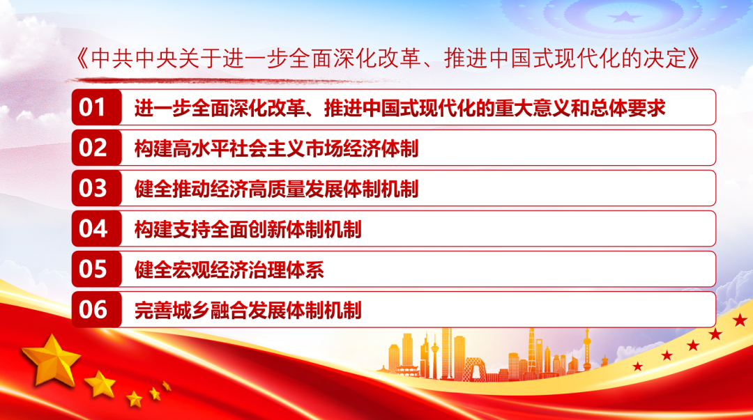 《中共中央关于进一步全面深化改革、推进中国式现代化的决定》提出了中国式现代化的战略路径,强调要把握新发展阶段,推动高质量发展。这一战略不仅关注经济增长,更注重人与自然的和谐共生以及全体人民共同富裕的目标。这为我们今后的工作指明了方向,要求我们在实践中不断创新,切实落实改革措施。