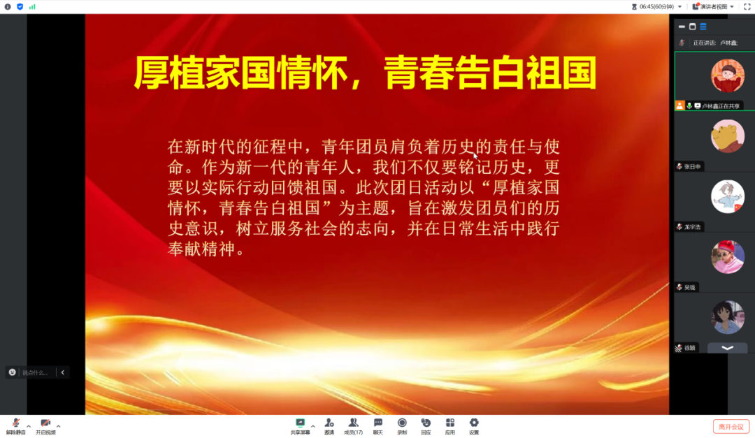 通过本次主题团日活动,同学们不仅深刻认识到了自己肩负的历史使命和社会责任,更激发了他们的爱国热情和奋斗精神。他们纷纷表示,要努力学习专业知识,提升综合素质,为祖国的繁荣富强贡献自己的力量。