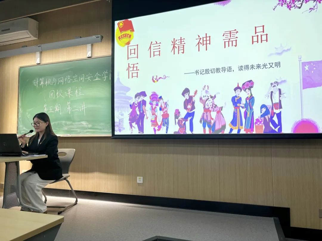 在青春的校园里,团员的成长离不开信仰的引领与责任的担当。本次团校团课由团委副书记曹玉蕾主讲,以“回信精神需品悟”“民族团结意义深”“校园宗教法规”三个主题为切入点,深入浅出地传递了青春与责任交融的时代精神,激励广大团员在思考中明确方向,在行动中践行信念。