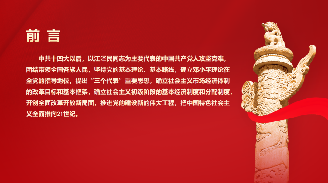 鄢智琛同志详细介绍了1992至2002年间中国在中国共产党的领导下,特别是在江泽民同志的代表下,如何坚持和发展党的基本理论、基本路线,确立邓小平理论的指导地位,并提出“三个代表”重要思想。它强调了社会主义市场经济体制的确立,包括所有制结构的改革、分配制度的调整以及宏观调控的加强。鄢智琛同志还讲解了国有企业改革、现代企业制度的建立,以及社会主义市场经济体制初步建立的成就。此外还介绍了跨世纪发展战略,包括人民生活达到小康水平、成功应对亚洲金融危机、可持续发展战略、西部大开发、扩大开放以及加入世界贸易组织,最后强调了政治文明建设和先进文化建设的推进,包括法治国家的建设、社会主义先进文化的发展以及精神文明建设的成就。