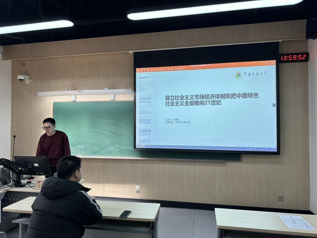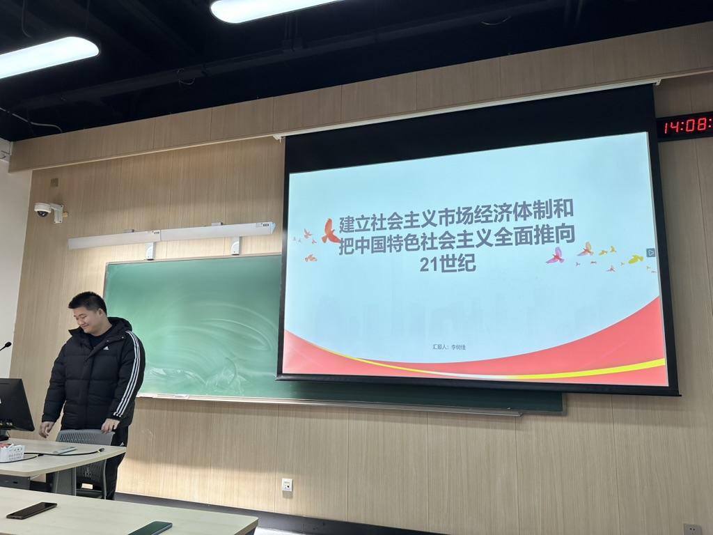 十大正规买足球网站成功举行“党员开讲了”系列主题讲座第五讲。本期主题讲座分为两组进行,开展时间为2024年11月23日,由2024级硕士生党支部的四位正式党员分别向两组积极分子进行分享。第五讲分享主题为《中华人民共和国简史》中“建立社会主义市场经济体制和把中国特色社会主义全面推向21世纪”等内容。