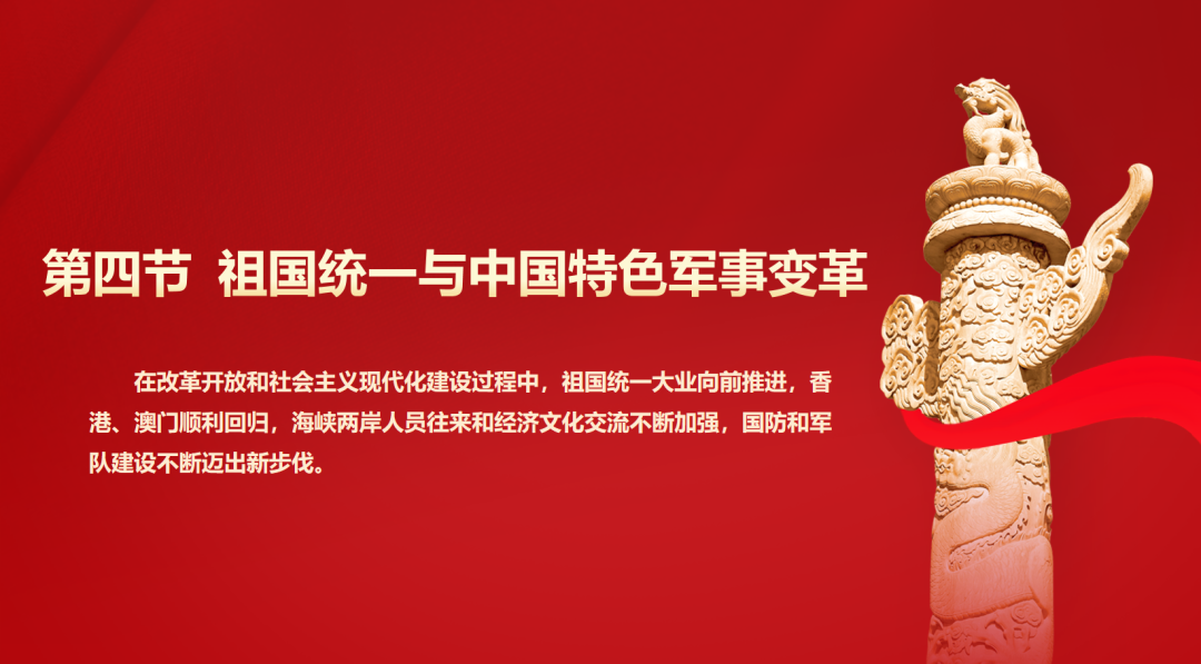李树佳同志回顾了建立社会主义市场经济体制和把中国特色社会主义全面推向21世纪的过程。改革开放以来,中国特色社会主义建设进入了新阶段,在党的坚强领导下,我国完成了从恢复行使对香港、澳门主权到构建现代化国防和外交新格局的历史任务。1997年香港回归和1999年澳门回归标志着“一国两制”方针的成功实践,为祖国和平统一大业奠定了坚实基础;两岸关系在“九二共识”的指导下取得历史性突破,为实现两岸和平发展创造了条件。同时,我国推进中国特色军事变革,提出科技强军战略,建设现代化国防力量,进一步提高国家安全保障能力。