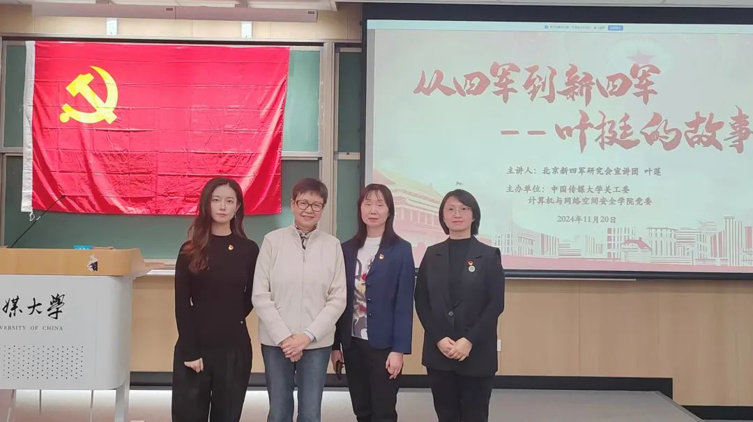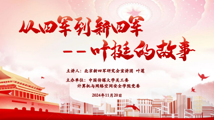 本次党课旨在通过回顾叶挺将军的生平事迹,增强同学们历史感、责任感和使命感,深入学习和了解革命先辈的光荣事迹和革命足迹,从中感悟并汲取老一辈革命家的精神力量,共同努力奋斗,为中华民族伟大复兴贡献力量。本次党课由计网公司本科生党支部主办,五级组织员李萍老师主持,邀请叶挺将军的孙女叶莲老师主讲。十大正规买足球网站党委副书记宋佳老师、院团委书记兼员工党务负责人丁晨溦老师出席本次党课,公司全体员工党员、入党积极分子,2024级计算机科学与技术一班、二班总计150余人参加学习。