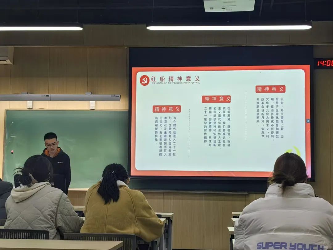 党员焦阳向同学们强调了红船精神的价值和意义。他指出,党的全部历史,在一定意义上可以说是在创新中发展、在发展中创新的光辉历史。八十多年来,我们党坚持创新和发展的生动实践,证明了党的十六大报告关于“创新是一个民族进步的灵魂,是一个国家兴旺发达的不竭动力,也是一个政党永葆生机的源泉”论断的真理性和科学性。因此,坚持和弘扬创新精神,对于当前我们推动社会主义现代化建设伟大工程和加强党的先进性建设伟大工程具有十分重要的现实意义。