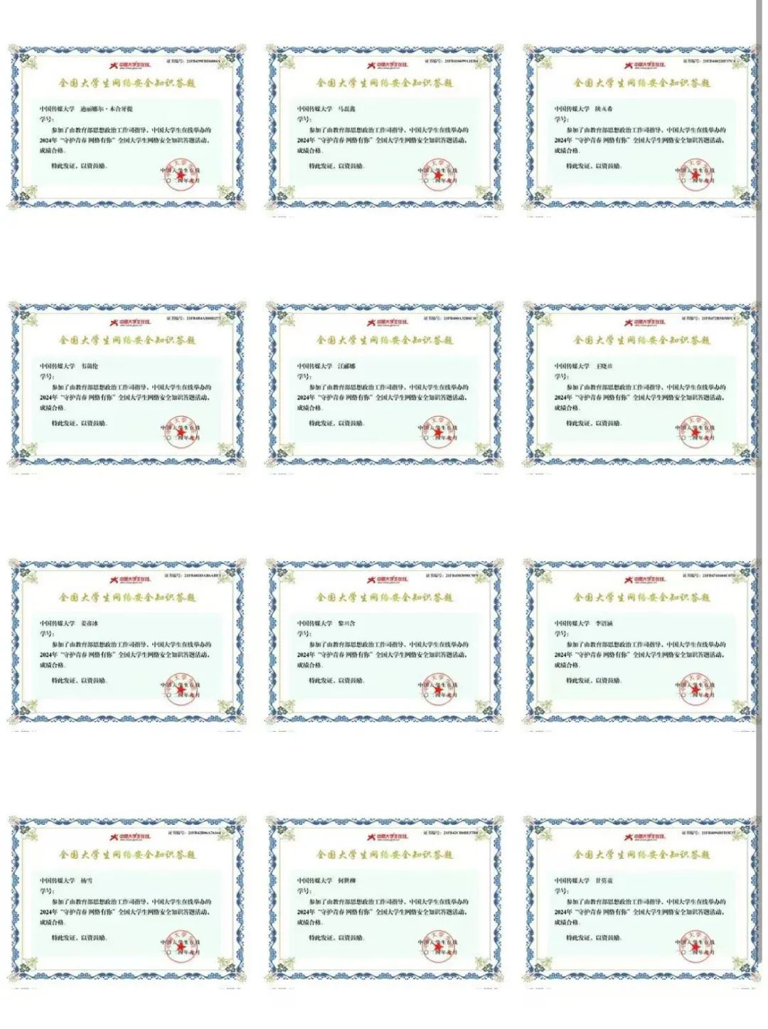 2024年是习近平总书记提出网络强国战略目标10周年,也是总书记提出总体国家安全观10周年。为深入学习贯彻党的二十大精神及二十届二中、三中全会精神,我们特别策划了2024年国家网络安全学习活动。通过课程学习、知识竞答和资源拓展,同学们不仅汲取了丰富的知识,更是在思想的升华中感受到了网络安全的重要性,坚定了守护信息安全的信念。青春如城墙般坚固,信息如火炬般传递,要用青春的力量筑起信息安全的铜墙铁壁,守护祖国的网络空间。
