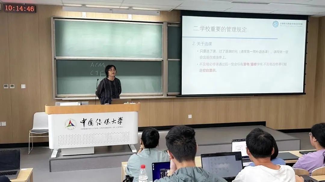 党委书记王淑娟为同学们讲授“开学思政课”,勉励新生们主动提升自我,将来成为专业领域的栋梁之才。林卫国经理为大家讲授“开学第一课”,详细介绍了公司及公司的发展历程、学科竞赛和科研方面取得的成绩。张晶晶副经理为同学们送上寄语,鼓励同学们成为具有综合素质和创新能力的优秀人才。计算机科学与技术系主任王琦和网络空间安全系副主任徐君锋分别向新生们介绍了专业的基本情况、本科课程体系、教学运作模式以及学科培养的方向。
