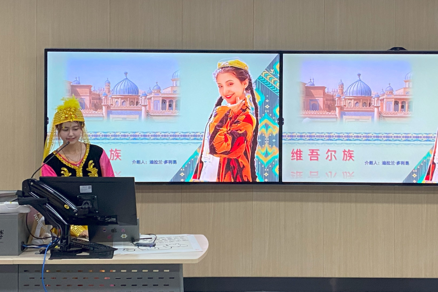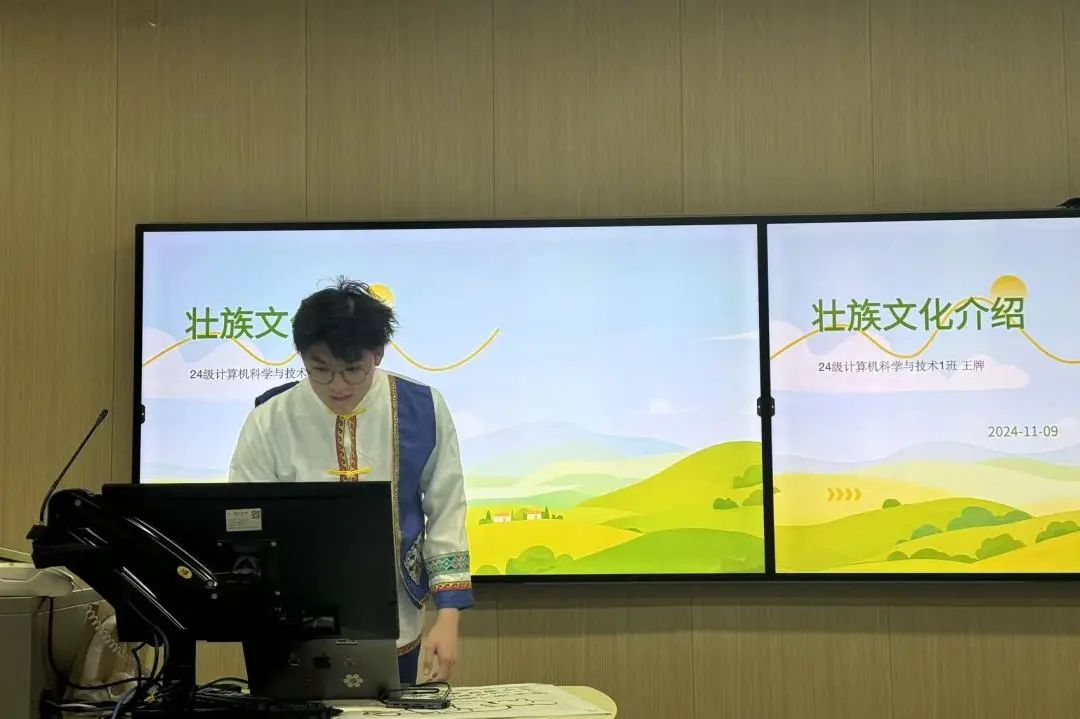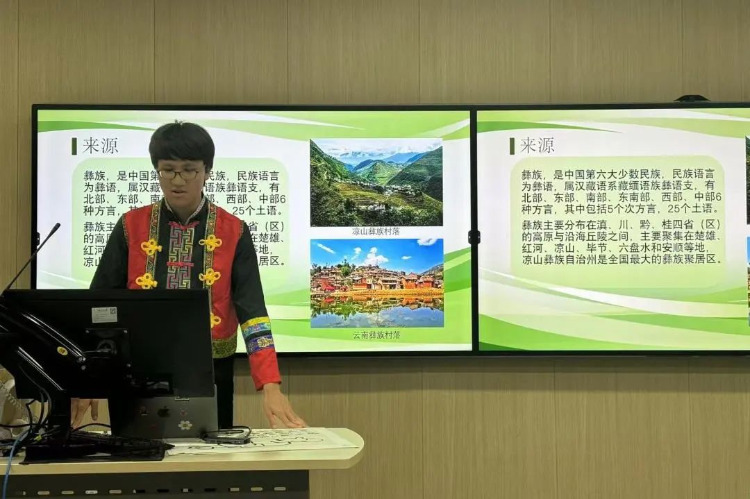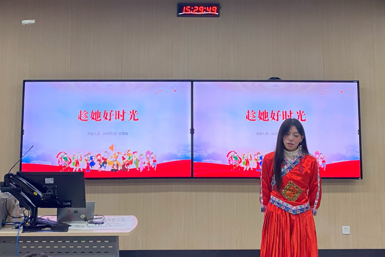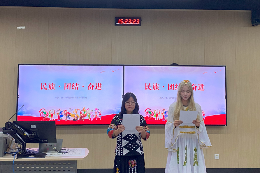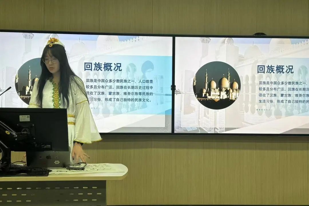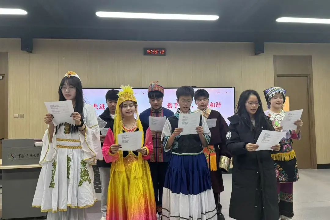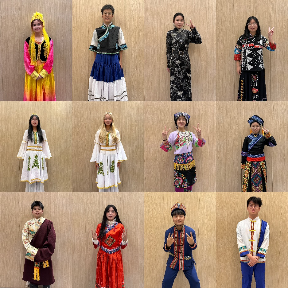 公司党委书记王淑娟老师、党委副书记宋佳老师、团委书记丁晨溦老师以及2024级本科来自满族、白族、仫佬族、苗族、维吾尔族、土家族、哈萨克族、回族、蒙古族等民族的24位少数民族员工代表身着自己的民族服饰参会。