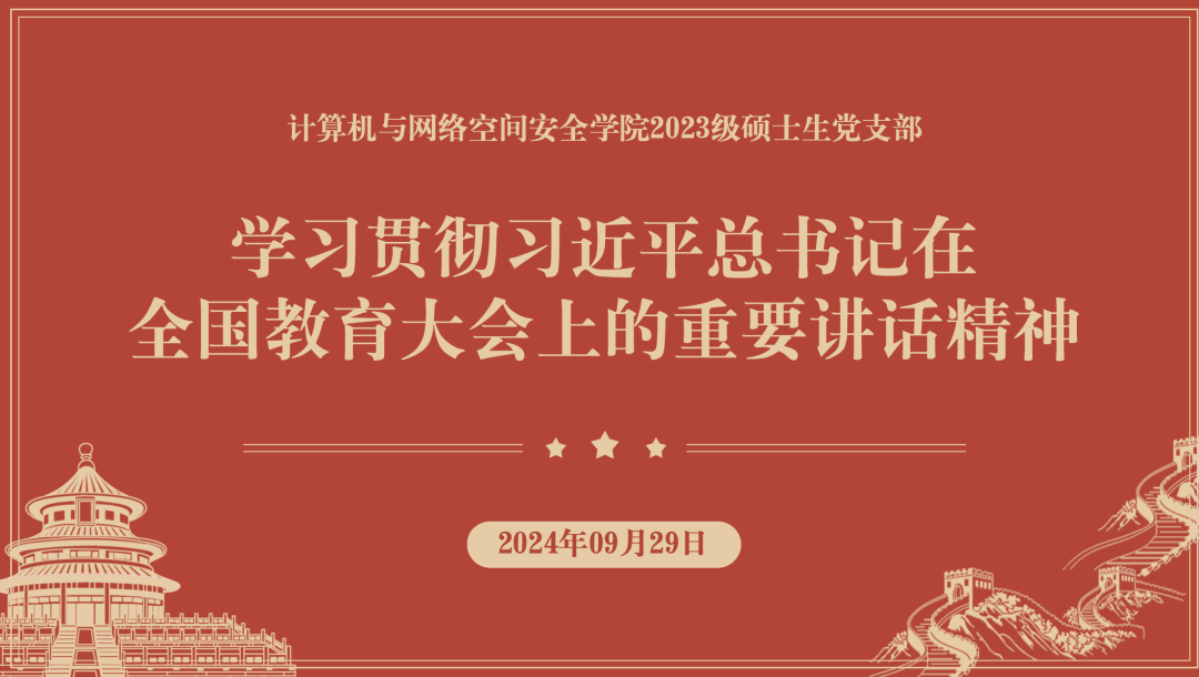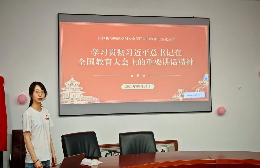 2024年9月29日下午,十大正规买足球网站2023级硕士生党支部在线上线下开展了“学习贯彻习近平总书记在全国教育大会上的重要讲话精神”九月党课学习会。此次会议由党支书裴雨晨同志主持,共计18名员工党员参加。