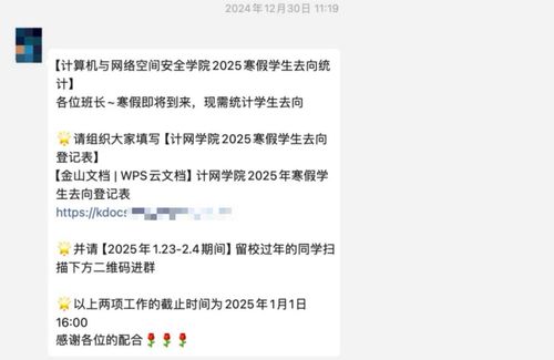 寒假前夕,计网公司组织统计建立了2025寒假员工去向及留校员工信息台账,精准掌握员工留校原因、留校时间、居住地点等信息,做好留校员工的联络和管理。