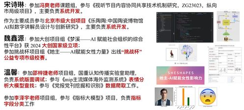 同时还有多位同学参与国家级和省部级科研项目,主要负责系统开发或者数据爬取等工作,参与大创和“挑战杯”项目并取得优异成绩,通过实践锻炼了科研能力。