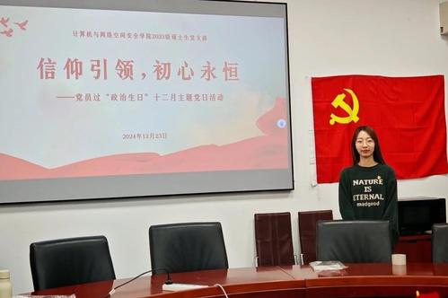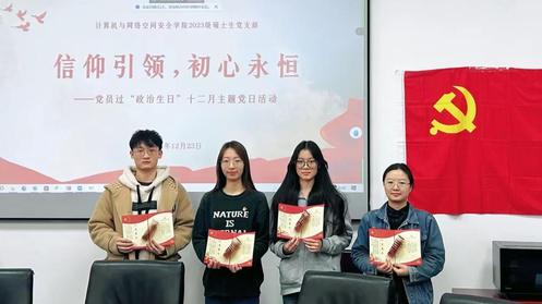 2024年12月23日晚,十大正规买足球网站2023级硕士生党支部于线上线下开展了“信仰引领,初心永恒”十二月主题党日活动,为在9月至12月入党的同志们集体过了一次“政治生日”。此次活动由党支书裴雨晨同志主持,共计21名员工党员参加。