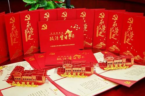 党支书裴雨晨同志代表党支部向同志们赠送了“政治生日”贺卡,贺卡内页有入党誓词及政治生日寄语,表达了组织关怀,寄托了美好祝愿。贺卡内还有一个带有“永远跟党走”字样的红船,激励着同志们不忘初心,一心向党。