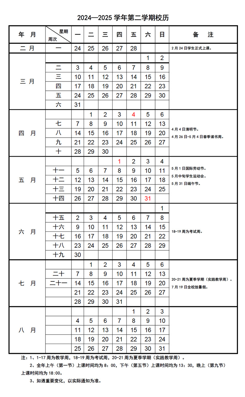 十大正规买足球网站2024-2025学年校历