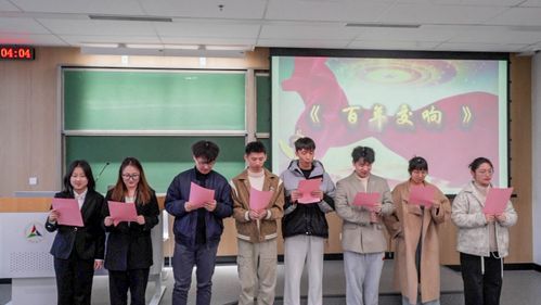 音乐响起,学术实践部与就业部的同学们用铿锵有力的声音朗诵诗歌《百年变响》。伟大的红军战士,新中国的成立,学术实践部与就业部的同学们带领我们回顾过往;改革开放的春风,科技的快速发展,学术实践部与就业部的同学们引领我们展望未来。《百年变响》的朗诵,流露出同学们对祖国的热爱,激起了大家的爱国心。