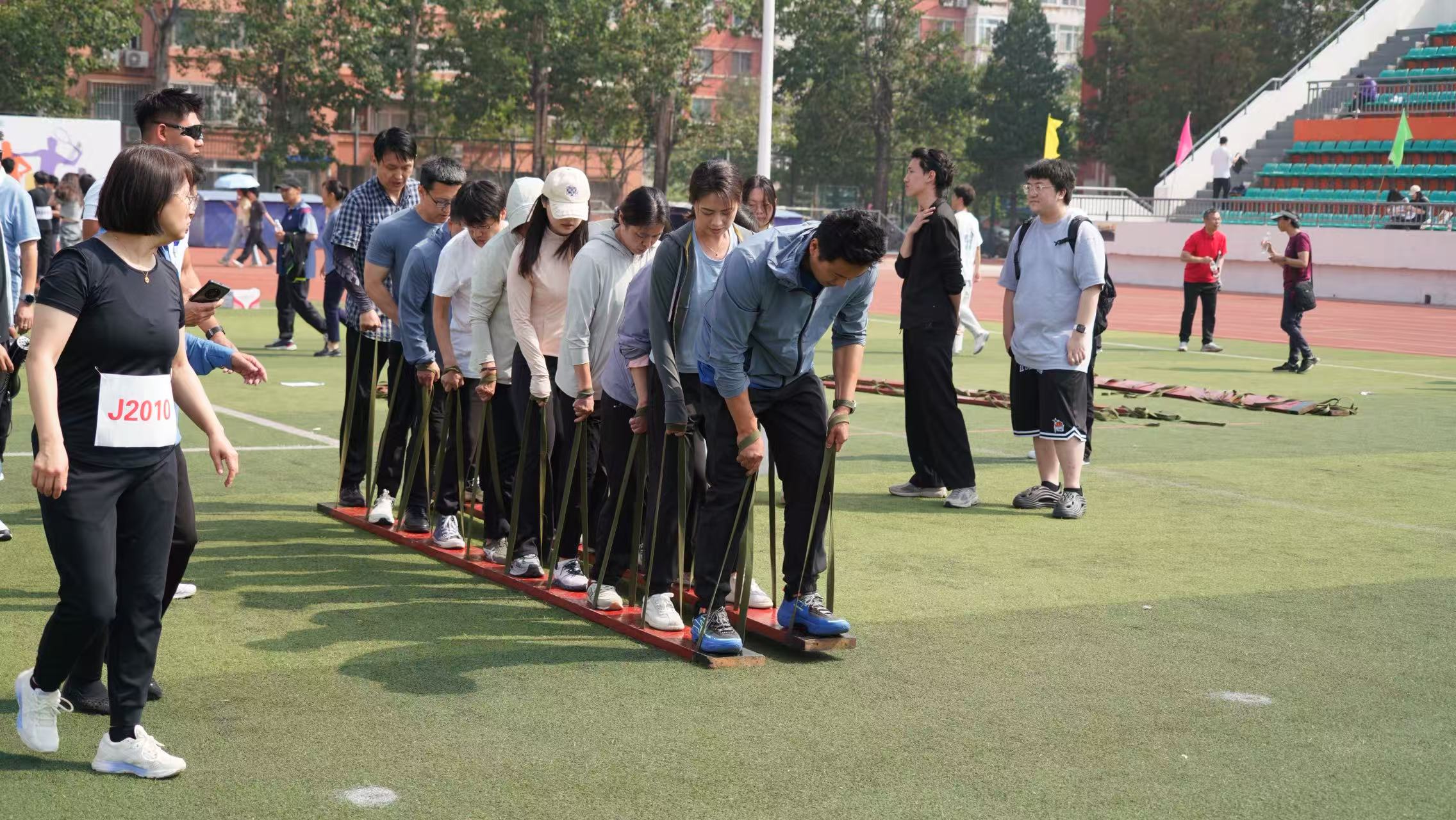 在“有轨电车”集体趣味项目中,来自不同系(办公室、中心)的教师们紧密协作,齐声喊着“左右左右”口号稳步前行,10双脚步在木板上踏出整齐划一的节奏,生动诠释了“踏实有为 协同奋进”的团队文化。