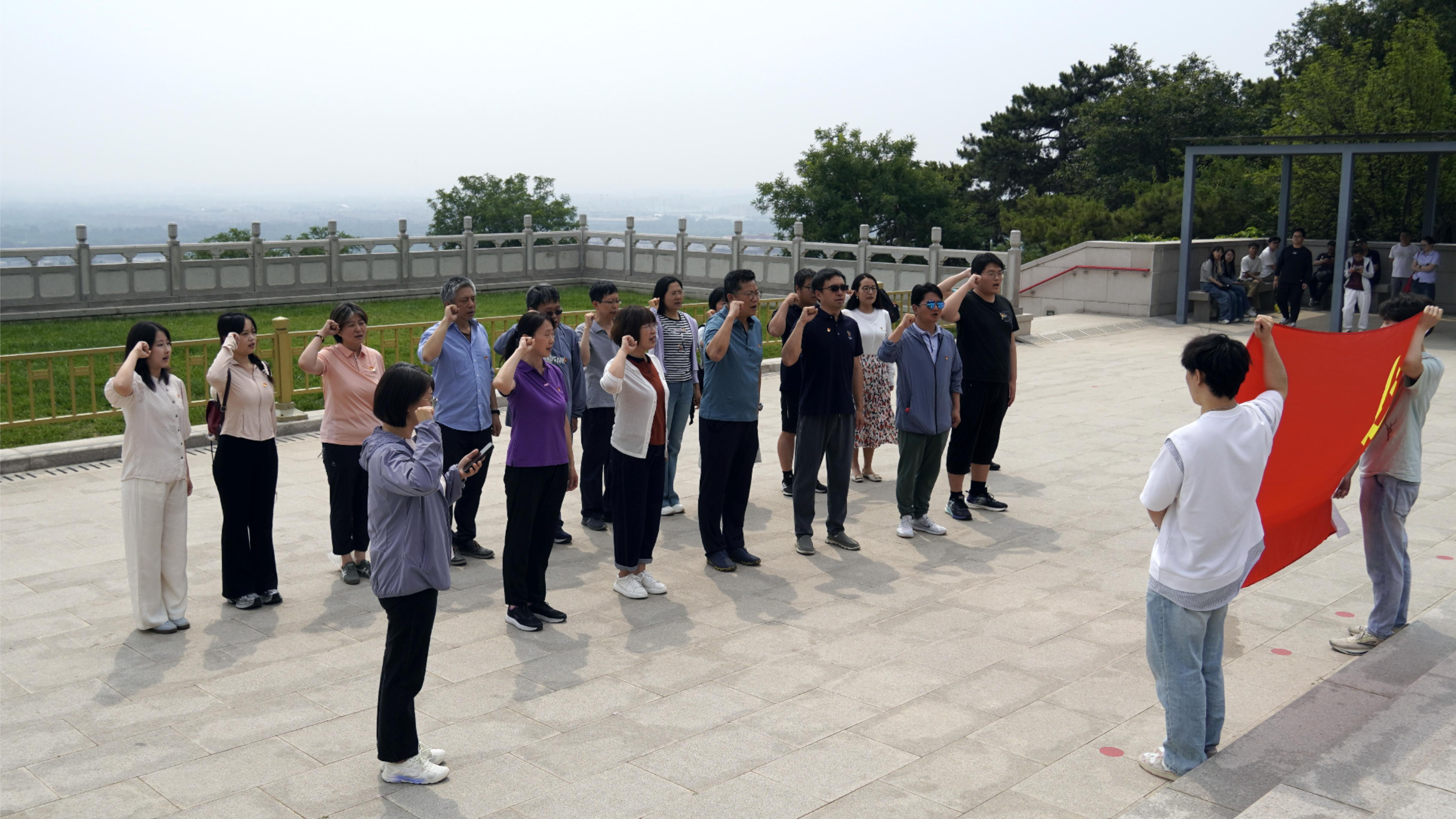 活动期间,师生们一同参观纪念广场,认真阅读《无名英雄纪念碑铭》,依次瞻仰陈宝仓、朱枫、吴石、聂曦四位革命烈士的雕像。在雕像前,师生们聆听着烈士们的英勇事迹,学习感悟他们的丰功伟绩,重温波澜壮阔的革命史诗。参观结束后,党委副书记宋佳带领师生党员面向党旗重温入党誓词。一句句铿锵有力的誓言,在广场上空久久回荡,彰显着党员们对党忠诚、为党和人民事业奋斗终身的坚定决心。