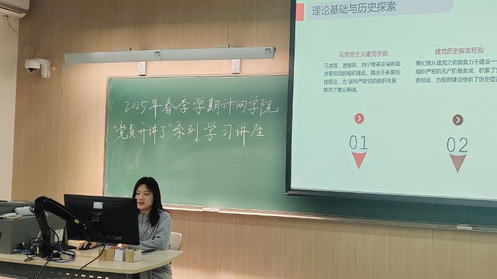 曹玉蕾同志围绕“坚持思想建党、理论强党”展开,强调了马克思主义是中国共产党鲜明的旗帜,是党历经风雨而不断发展壮大的根本指引。首先阐述了马克思主义与中国实际相结合的必然性,指出中国共产党自成立之日起,便将马克思主义鲜明写在党的旗帜上,通过古田会议、延安整风运动等一系列重要实践,成功实现了马克思主义基本原理与中国革命、建设实际的有机结合,奠定了党的思想理论基础。随后,曹玉蕾同志带领大家回顾了马克思主义中国化的光辉历程,从毛泽东思想的创立到邓小平理论、“三个代表”重要思想、科学发展观的形成,再到习近平新时代中国特色社会主义思想的系统回答,强调了党在不同历史时期对马克思主义的创造性运用和发展,推动了中国特色社会主义事业的不断前进。最后总结了马克思主义中国化取得的伟大成就,证明了只有坚持马克思主义并不断推进其中国化,才能使党始终保持强大的战斗力和凝聚力。在新时代的征程中,必须毫不动摇地坚持思想建党、理论强党,确保党始终沿着正确的方向前进,不断开创中国特色社会主义事业的新局面。