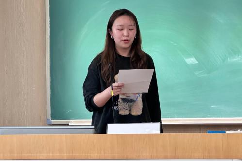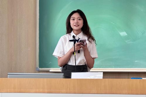 2022级硕士生党支部优秀毕业生党员张欣怡同志回顾了在党旗下成长的青春历程,分享了理论学习与实践锻炼的收获,强调要坚定理想信念,深入学习党的创新理论,始终把人民放在心中最高位置,牢记为民初心使命。她号召全体毕业生党员勇担时代重任,以实际行动践行初心使命,用青春书写无愧于党和人民的精彩篇章。