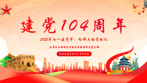百年征程波澜壮阔,百年初心历久弥坚。在奔腾不息的历史长河中,我们迎来了中国共产党104周年华诞。从嘉兴南湖的一叶红船到领航复兴伟业的巍巍巨轮,中国共产党团结带领中国人民,谱写了气吞山河的壮丽史诗。我们怀着无比崇敬和激动的心情,共同庆祝这个属于全体共产党员和中国人民的光辉节日!让我们重温峥嵘岁月,感悟信仰力量,汲取奋进新征程的磅礴伟力!