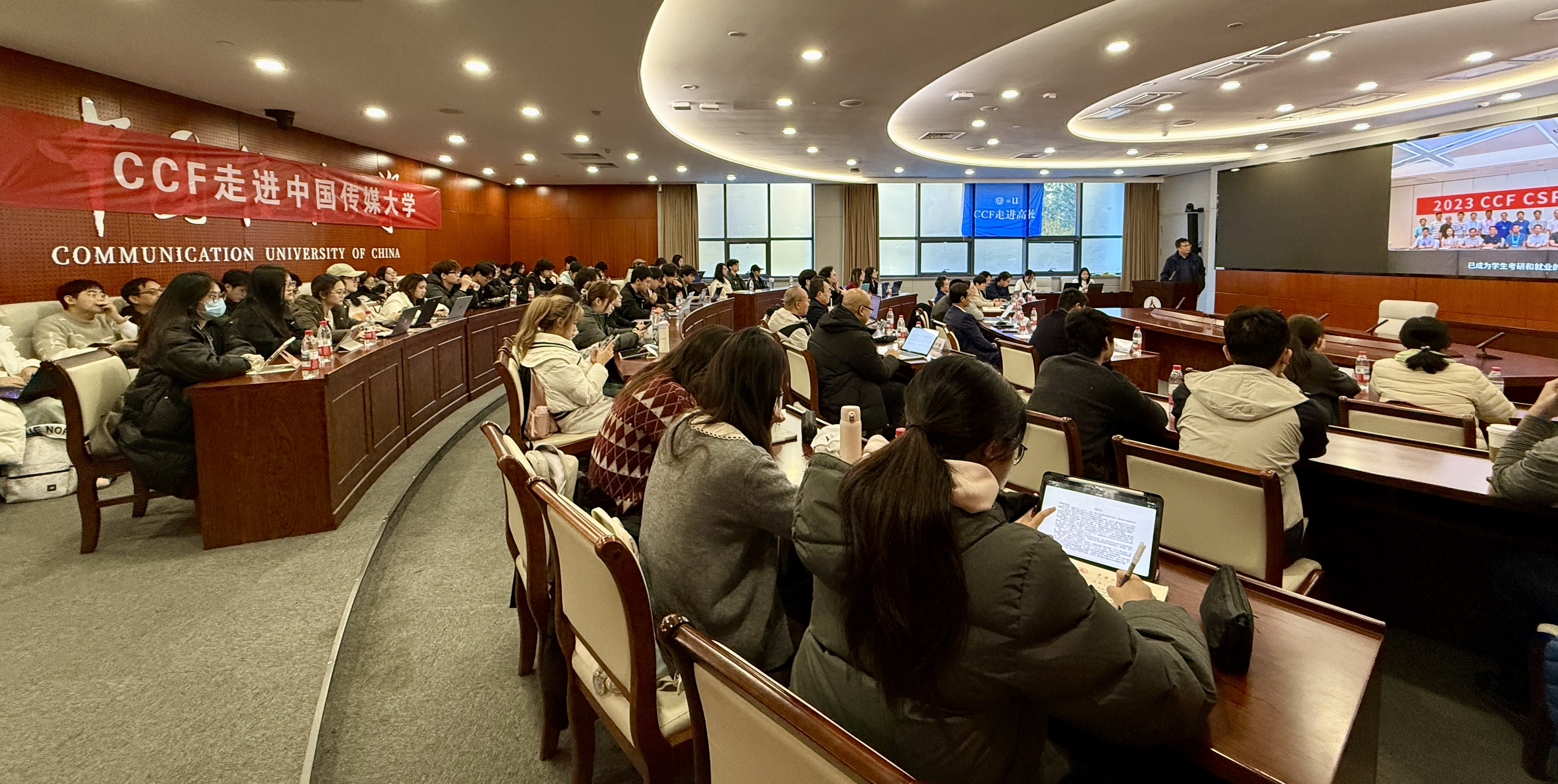 活动伊始,现场师生共同观看了CCF宣传片与老专家访谈《周兴铭:干就干好 勇攀高峰》。通过两段视频,大家不仅了解到CCF的发展历程、行业影响力及在推动计算机领域学术研究与技术创新中的重要作用,更从前辈讲述中回溯了中国计算机发展的关键节点,深刻感悟老一辈科技工作者攻坚克难、开拓创新的精神。