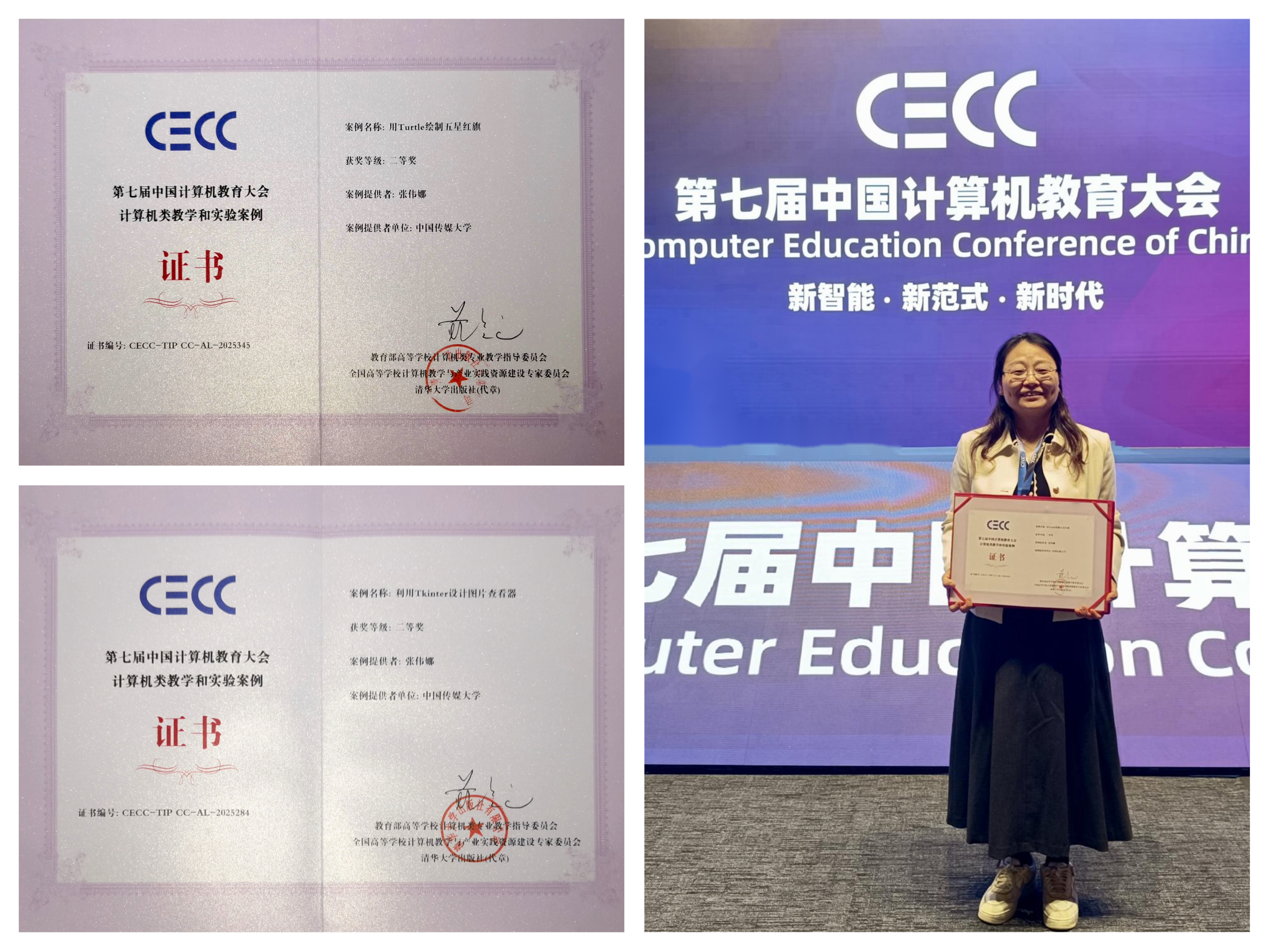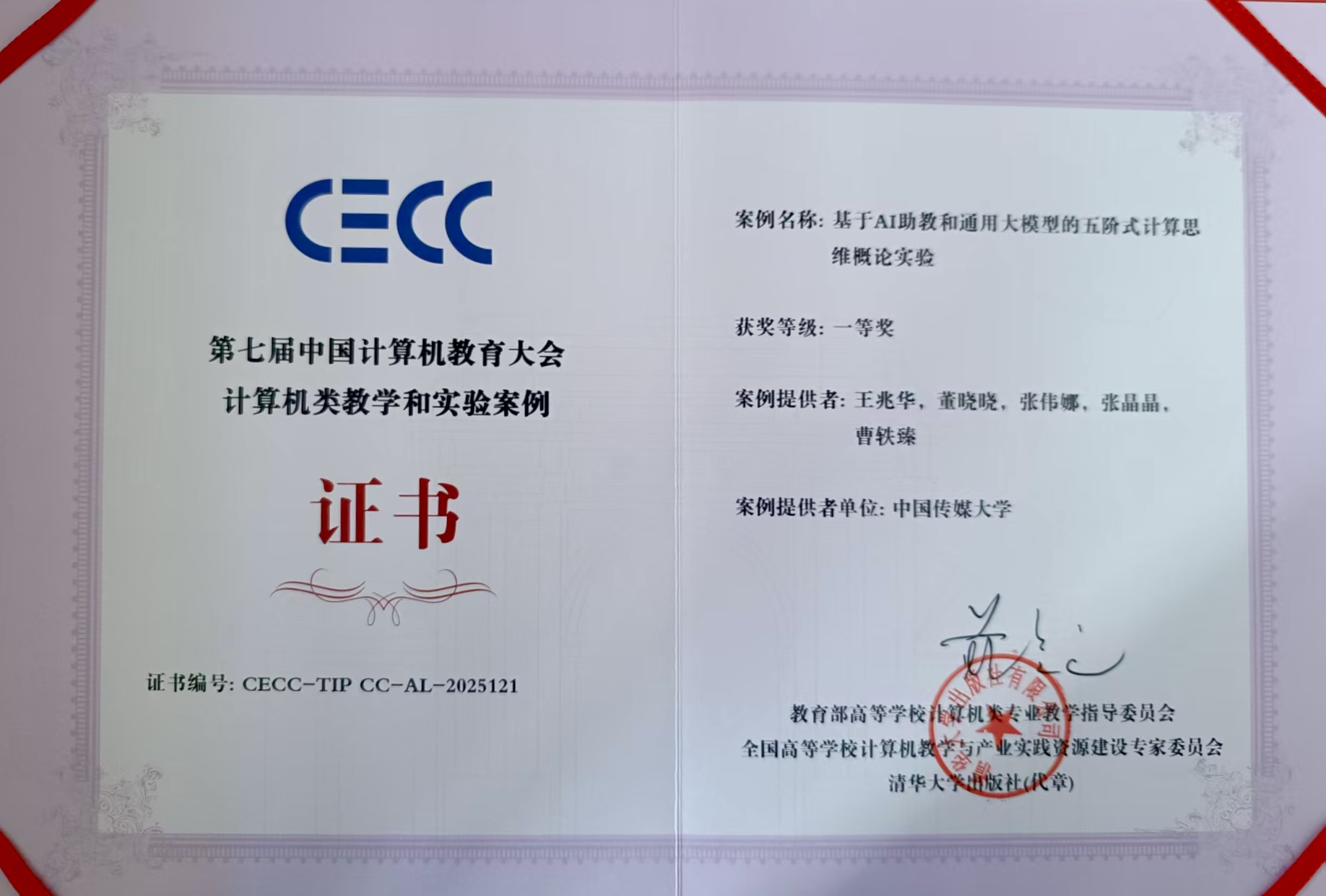 11月28日至30日,第七届中国计算机教育大会(CECC)在厦门召开。十大正规买足球网站计算思维课程组团队教师凭借深耕教学实践的扎实积累与聚焦传媒特色的创新设计,在大会计算机类教学和实验案例评选中脱颖而出,斩获一等奖1项、二等奖2项。