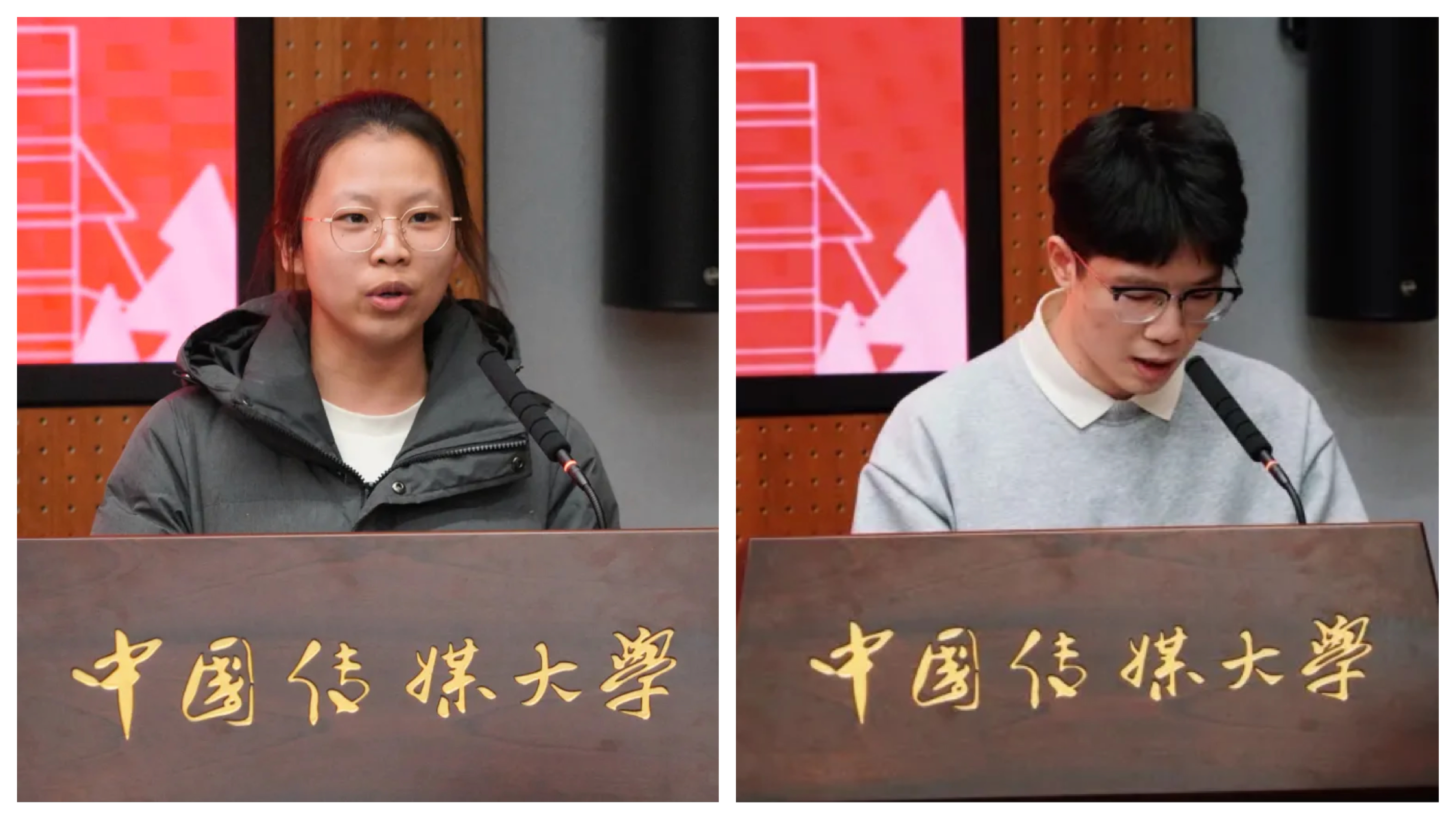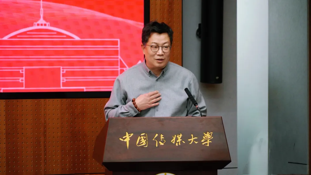 奇安信集团党委办公室主任、奇安信基金会副秘书长杨文华与传媒大学教育基金会副秘书长高明共同为一等奖获奖同学颁奖
