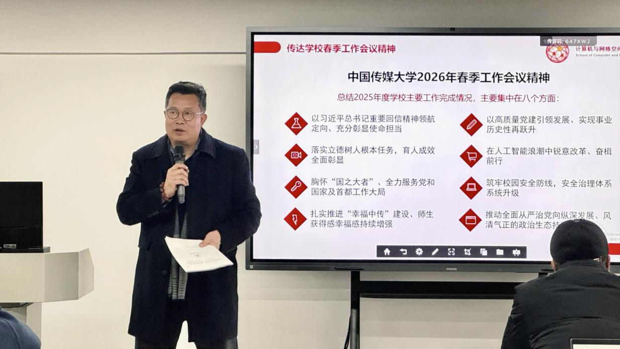 张晶晶副经理领学了2026年全国教育工作会议精神,并结合公司育人实践深入阐释了会议要义与战略部署。她表示,会议系统总结了“十四五”以来教育事业取得的历史性成就,明确了2026年作为“十五五”开局之年与教育强国建设三年行动计划承上启下的关键节点,部署了八项重点任务,即:坚持为党育人、为国育才,高质量推进思政课程与数字网络育人融合;优化高等教育结构,深化“双一流”建设与分类发展;全面推动人工智能赋能教育,加快全学段人工智能通识教育普及;强化科教融汇与拔尖创新人才培养;建强高素质专业化教师队伍,深入实施教育家精神铸魂强师行动;扩大高水平教育对外开放,提升中国教育全球影响力;同时坚决守牢政治安全、校园安全与廉洁底线。结合公司实际,张晶晶副经理强调,全体教职工要深刻把握教育发展新方位,将国家部署与传媒育人实践紧密结合,在课堂教学改革、AIGC能力培养、通识教育深化等方面主动作为,切实把会议精神转化为提升人才培养质量、服务教育强国建设的实际行动。