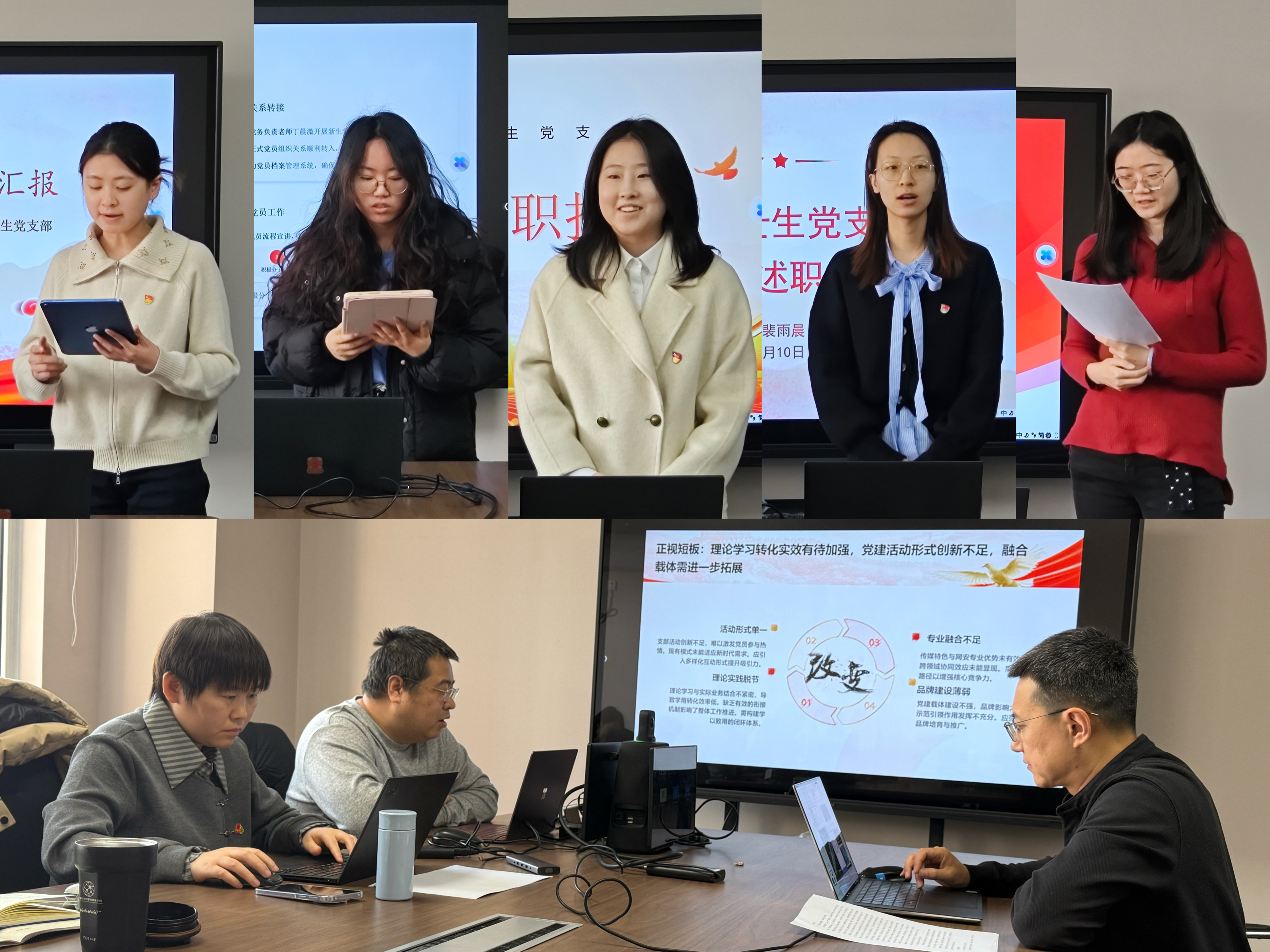 公司党委班子成员结合各支部工作实际逐一进行点评。点评环节既肯定了各党支部2025年度在理论学习、组织建设、党员管理、特色共建等方面取得的扎实成效,也直指当前基层党建工作存在的突出问题,并就推动基层党建提质增效提出具体要求。王淑娟书记对教职工支部建设提出指导性建议,要持续深化理论学习与业务实践的有机融合,着力推动政治学习与教学科研、人才培养同频共振;要积极实现党性教育与专业课堂的弹性融合,打破传统壁垒,将思政教育润物无声地融入专业教学全过程,切实提升育人实效。宋佳副书记聚焦组织力提升与党员教育管理,指出应进一步明晰支部建设路径,鼓励各支部加强经验互鉴,凝聚发展共识;同时,要创新活动载体与形式,推动理论学习与升学就业等中心工作深度融合,多措并举激发党员队伍的活力与号召力。丁晨溦老师着重就党建品牌深化与学科融合提出建议,强调要持续巩固红色“1+1”支部共建活动成果,积极拓展优质共建单位;充分发挥学科优势,着力完善“人工智能+网络空间安全”特色党建成果的转化与应用机制。